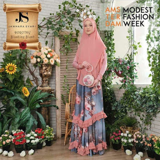 | Bahan | : Dress – Jersey komb.ceruty print HQ Khimar – Ceruty babydoll 2layer dengan swarovsky original JS |